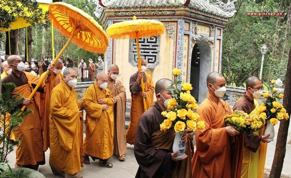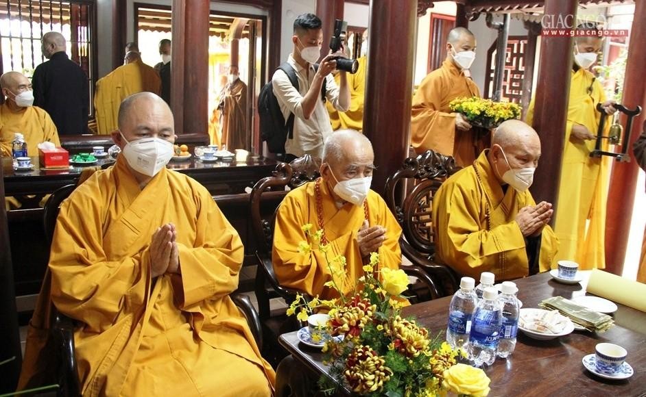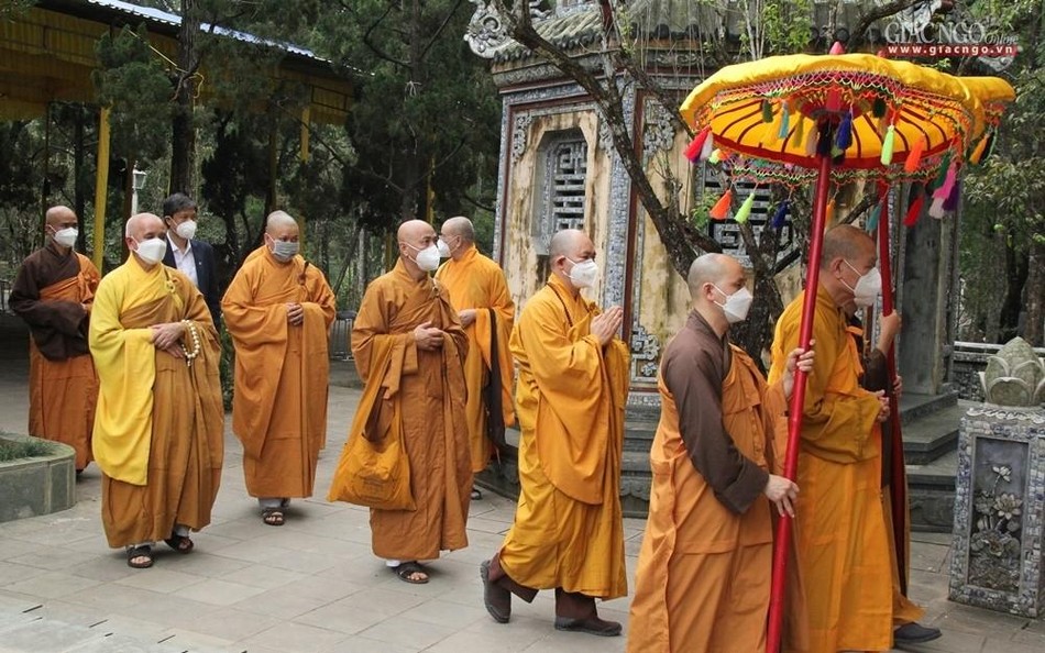 Cùng đi có Hòa thượng Thích Huệ Thông, Phó Tổng Thư ký Hội đồng Trị sự kiêm Chánh Văn phòng II GHPGVN cùng chư tôn đức Ủy viên Ban Thường trực Hội đồng Trị sự tại Huế: Hòa thượng Thích Đức Thanh (Trưởng ban Trị sự GHPGVN tỉnh Thừa Thiên Huế), Hòa thượng Thích Hải Ấn (Viện trưởng Học viện Phật giáo VN tại Huế).