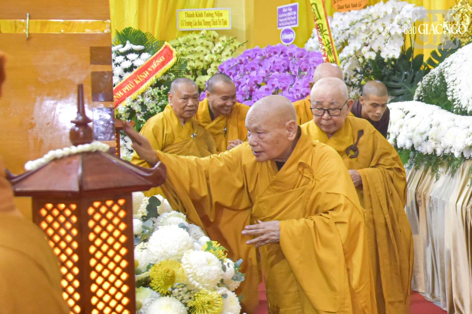 Tại Giác linh đường Trưởng lão Hòa thượng Thích Trí Tịnh, chư tôn giáo phẩm đã dâng hương tưởng niệm. Hòa thượng Thích Lệ Trang, Phó Chủ tịch Hội đồng Trị sự, Trưởng ban Nghi lễ Trung ương truy tán công hạnh của Trưởng lão Hòa thượng Phó Pháp chủ tân viên tịch, dẫn lễ cầu nguyện Giác linh Hòa thượng cao đăng thượng phẩm.
