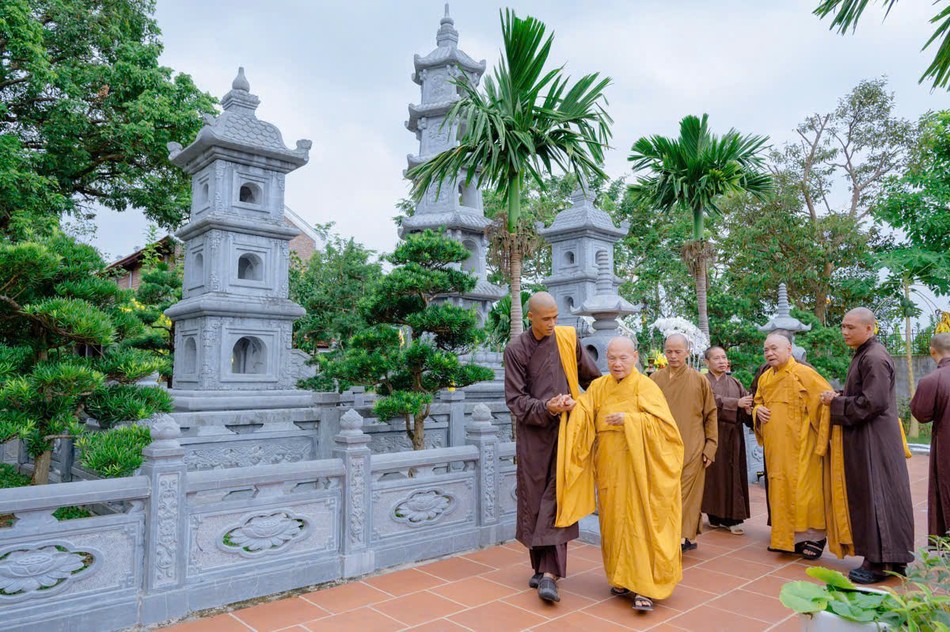 Dịp này, Trưởng lão Hòa thượng Chủ tịch và phái đoàn Hội đồng Trị sự viếng bảo tháp nơi an trí thân tứ đại của Đức Đệ tam Pháp chủ, tọa lạc trong khuôn viên tổ đình Viên Minh.