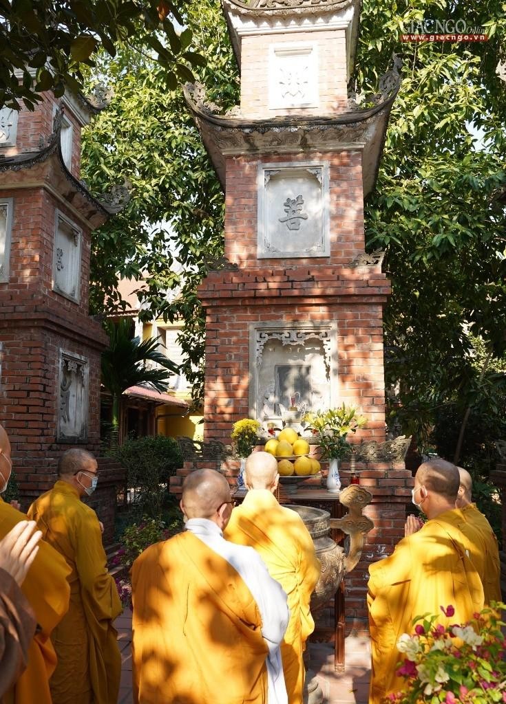 Sáng 8-12, Trưởng lão Hòa thượng đã vào tổ đình Viên Minh (chùa Ráng, xã Quang Lãng, huyện Phú Xuyên) dâng hương đảnh lễ trước bảo tháp Đức Đệ tam Pháp chủ - Đại lão Hòa thượng Thích Phổ Tuệ (1917-2021) và dự lễ tuần lâm chung thất của ngài do Ban Thường trực Hội đồng Chứng minh, Ban Thường trực Hội đồng Trị sự, Ban Trị sự GHPGVN TP.Hà Nội cùng môn đồ pháp quyến tổ chức.