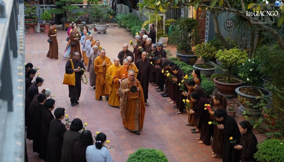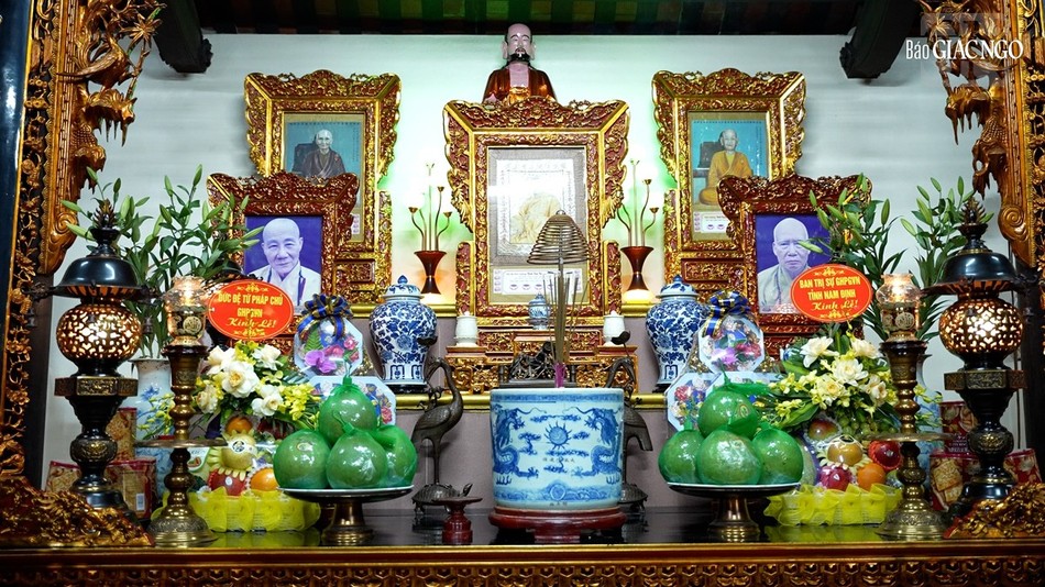 Tại nơi đây, Đức Đệ tứ Pháp chủ GHPGVN cùng chư vị Hòa thượng Thích Bảo Nghiêm, Phó Chủ tịch Hội đồng Trị sự, Trưởng ban Hoằng pháp T.Ư, Trưởng ban Trị sự GHPGVN TP.Hà Nội; Hòa thượng Thích Quảng Hà, Phó Chủ tịch Hội đồng Trị sự, Trưởng ban Trị sự GHPGVN tỉnh Nam Định; Thượng tọa Thích Giác Dũng, Thư ký Văn phòng II Hội đồng Chứng minh; Thượng tọa Thích Thanh Phong, Phó Chủ tịch Hội đồng Trị sự, Trưởng ban Kinh tế - Tài chính T.Ư cùng chư Thượng tọa Văn phòng Đức Pháp chủ, Ban Trị sự các tỉnh phía Bắc đã lễ Phật, dâng hương lễ Tổ tại Tổ đường.
