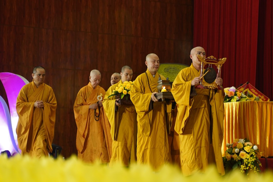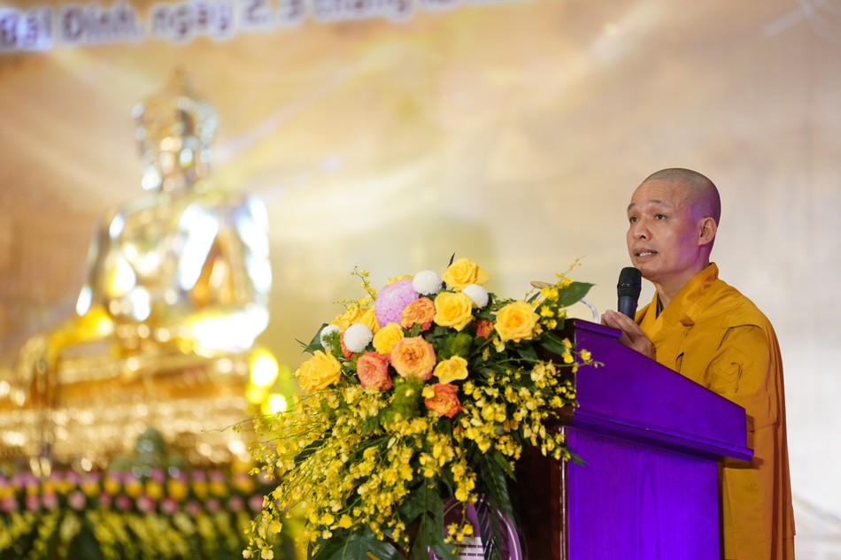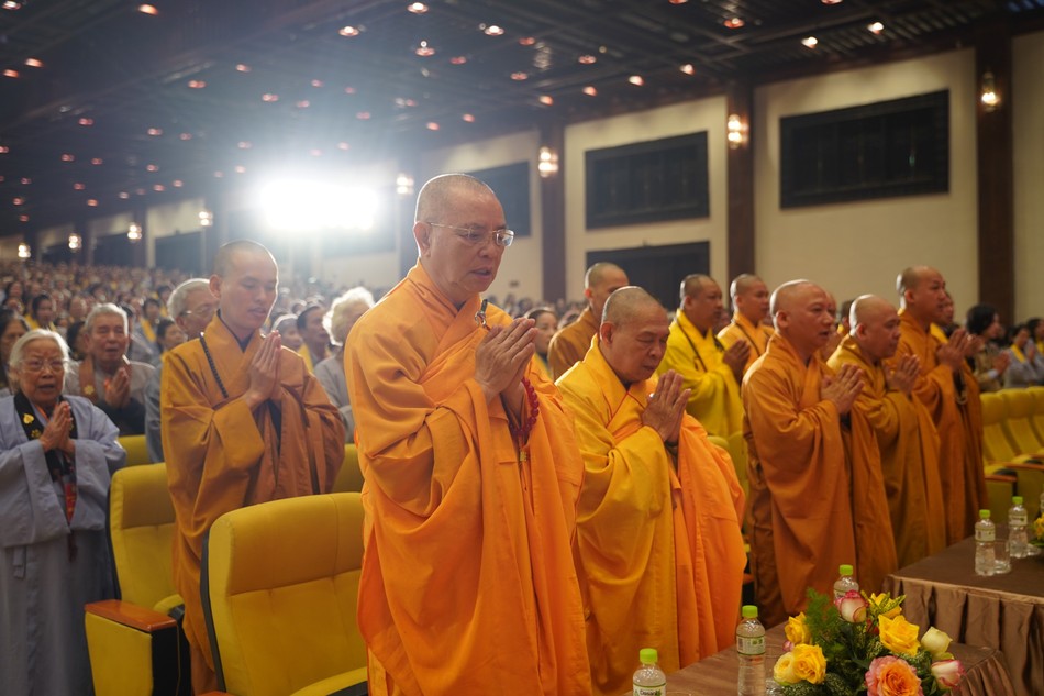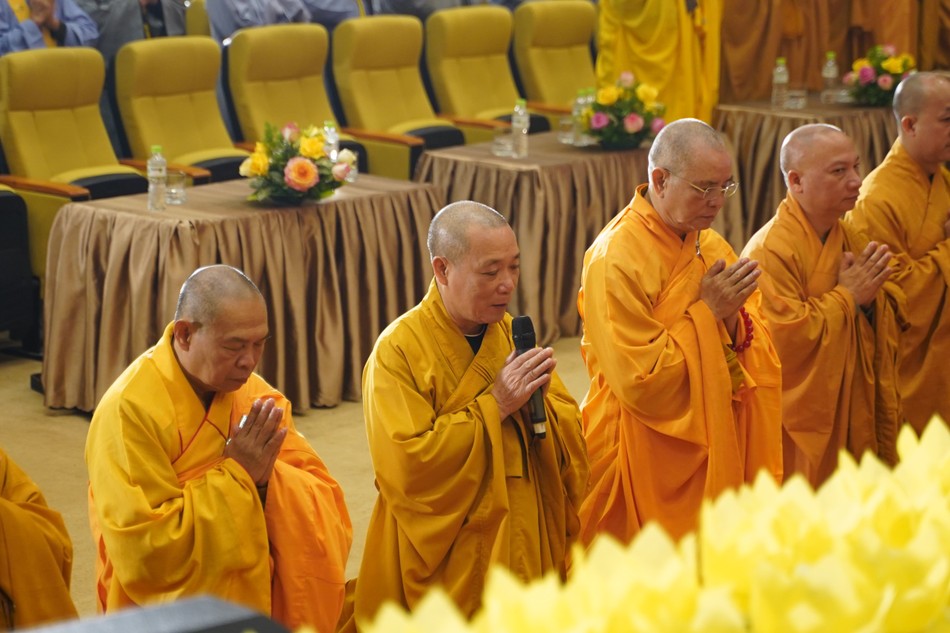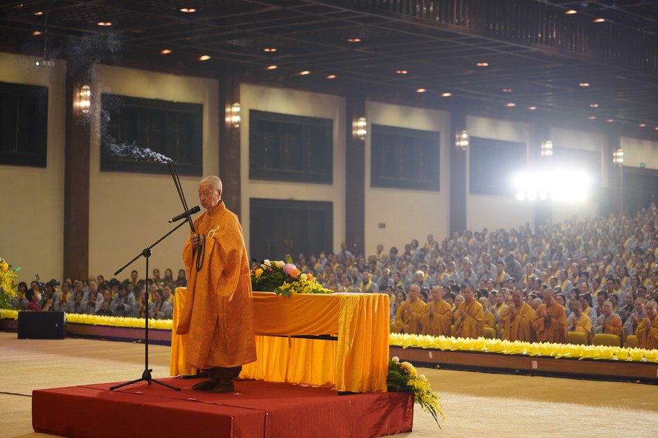Hòa thượng Trưởng ban Tổ chức tác bạch tri ân và phát nguyện "y giáo phụng hành" |