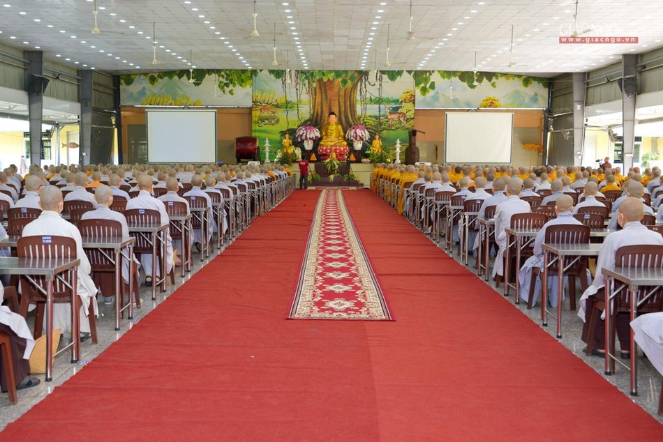 GNO - Chiều 18-12, Trưởng lão Hòa thượng Thích Trí Quảng, Đệ nhất Phó Pháp chủ, Viện trưởng Học viện Phật giáo VN tại TP.HCM quang lâm sách tấn Tăng Ni sinh viên đang tu học nội trú tại cơ sở 2 (xã Lê Minh Xuân, huyện Bình Chánh).
