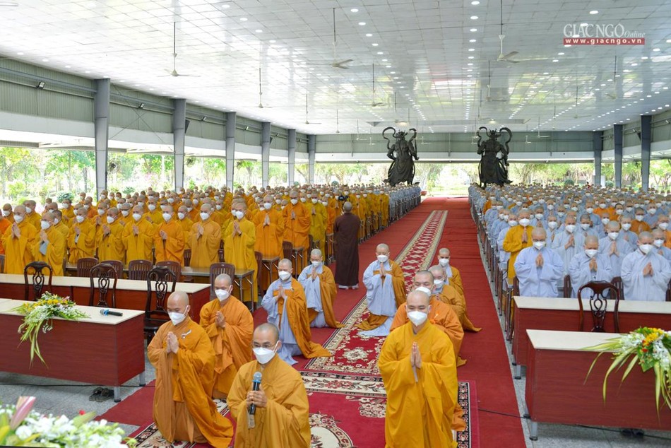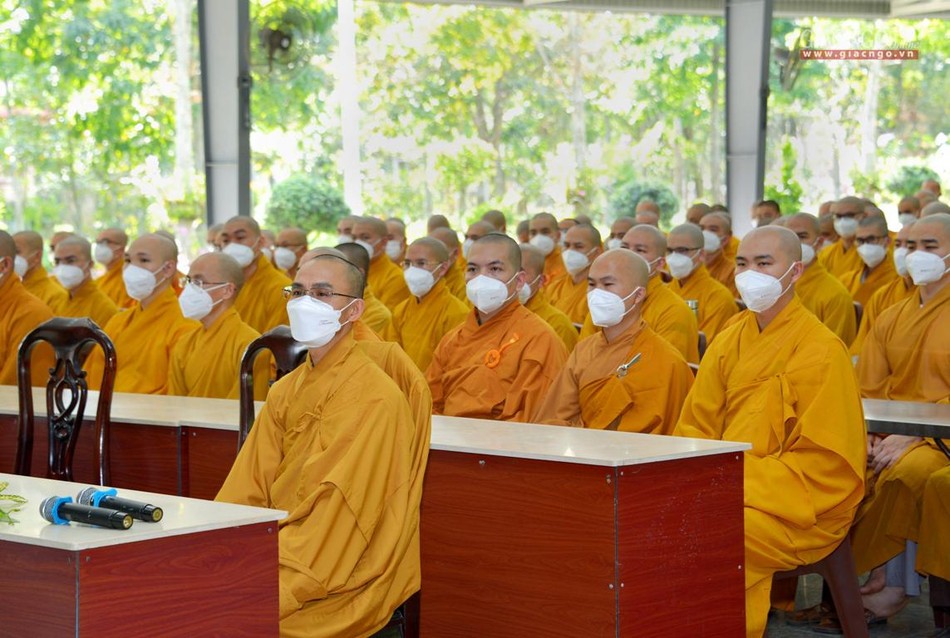 Nhân đây, Hòa thượng Viện trưởng đã nhắc lại những điểm chính về tình hình dịch bệnh Covid-19 diễn ra tại Việt Nam và một số nước trên thế giới. Qua đó, Trưởng lão Hòa thượng đã nêu tầm quan trọng của cách sống chánh niệm cũng như nếp sống truyền thống thiền môn trong việc giữ gìn sức khỏe để tu học, vượt qua dịch bệnh.