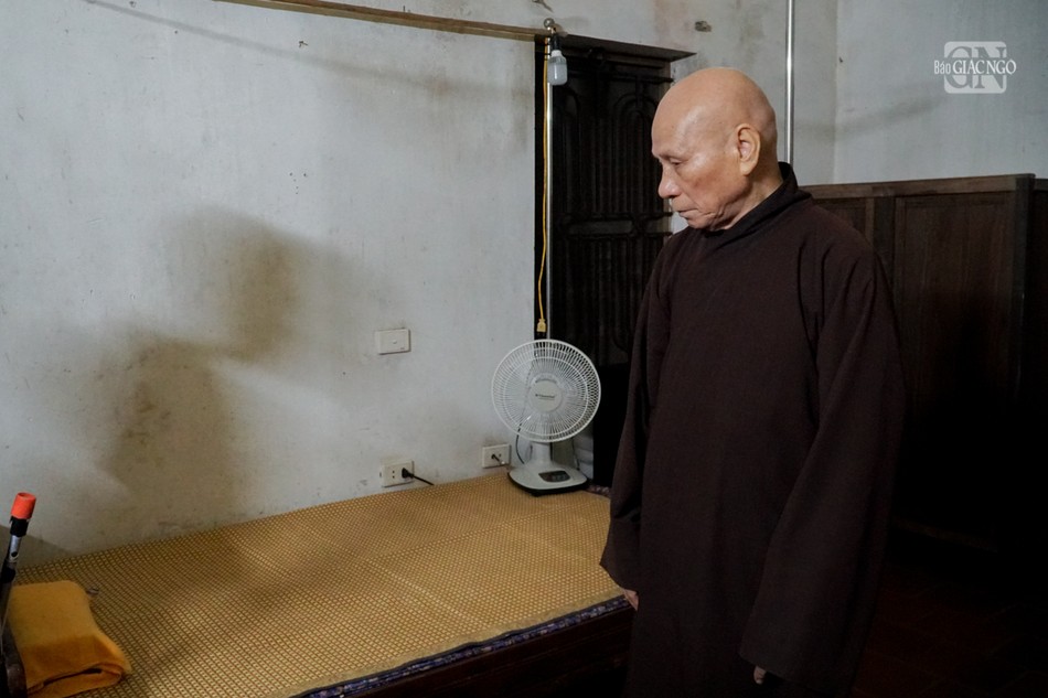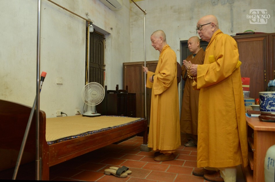 Đức Pháp chủ thăm liêu phòng, nơi có chiếc giường đơn sơ của cố Đại lão Hòa thượng Thích Phổ Tuệ |