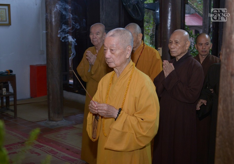 GNO - Sáng nay, 30-10 (16-9-Quý Mão), tại tổ đình Viên Minh (X.Quang Lãng, H.Phú Xuyên, TP.Hà Nội), Trưởng lão Hòa thượng Thích Trí Quảng, Pháp chủ GHPGVN đã quang lâm viếng bảo tháp và thăm thiền thất cố Đại lão Hòa thượng Thích Phổ Tuệ - Đức Đệ tam Pháp chủ GHPGVN nhân tuần lâm Đại tường của ngài.