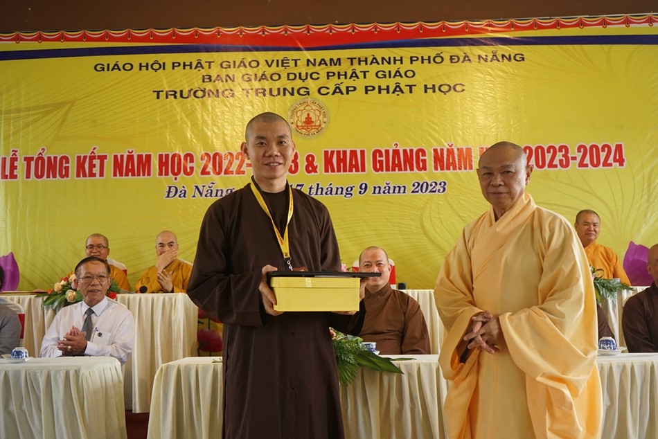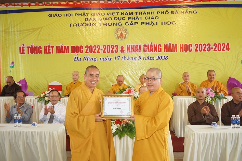 Dịp này, Trường Trung cấp Phật học Đà Nẵng cũng tiếp tục nhận được sự hỗ trợ từ Quỹ đào tạo Tăng tài “Ngộ Chân Tử” của chùa Hoằng Pháp.
