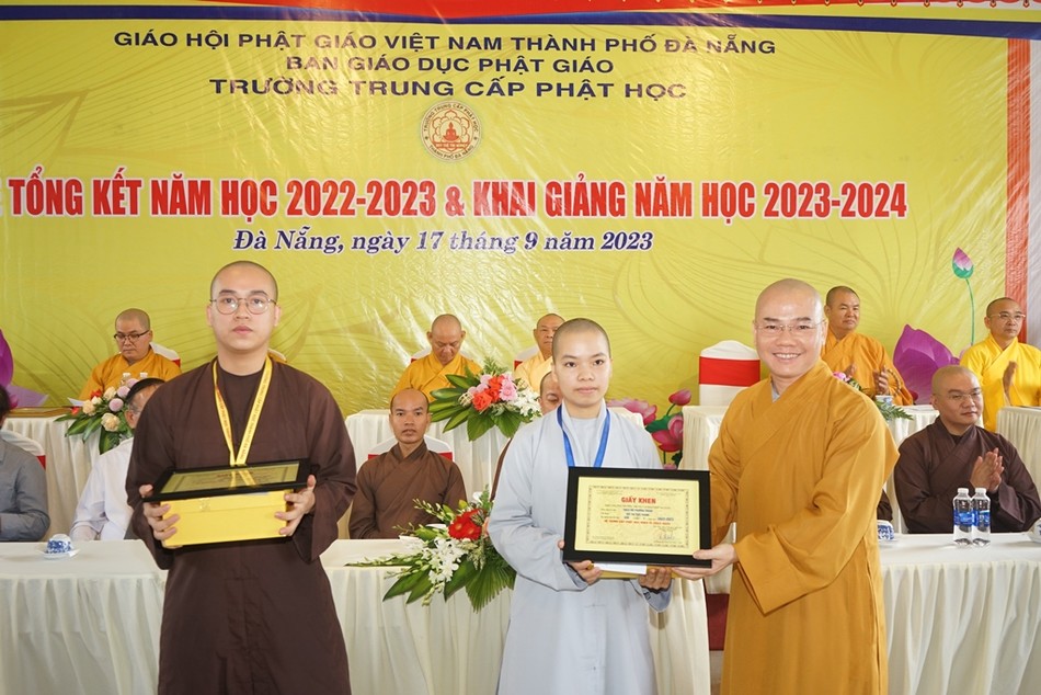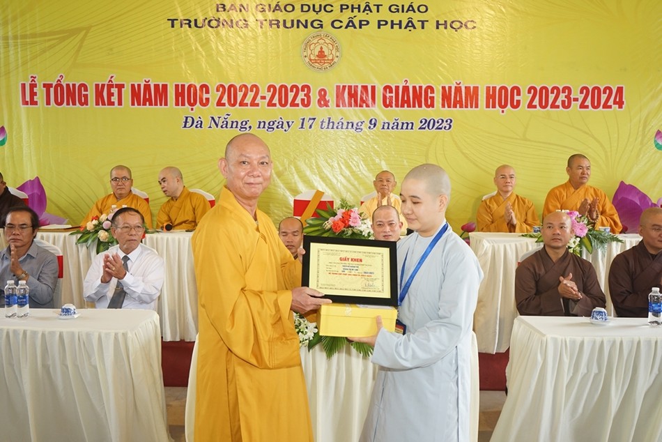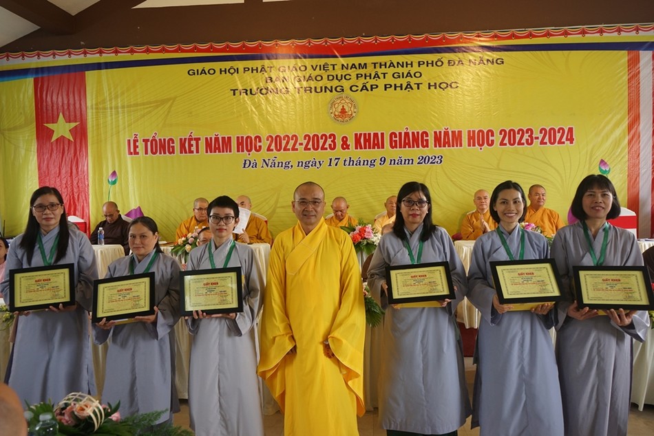 Tại buổi lễ, Ban Trị sự và Ban Giám hiệu nhà trường đã trao tặng Giấy khen, phần thưởng cho các học viên đạt loại Giỏi trong năm học 2022-2023: Lớp Trung cấp Phật học: 19 vị lớp Sơ cấp Phật học: 1 vị và lớp Cư sĩ: 20 vị.