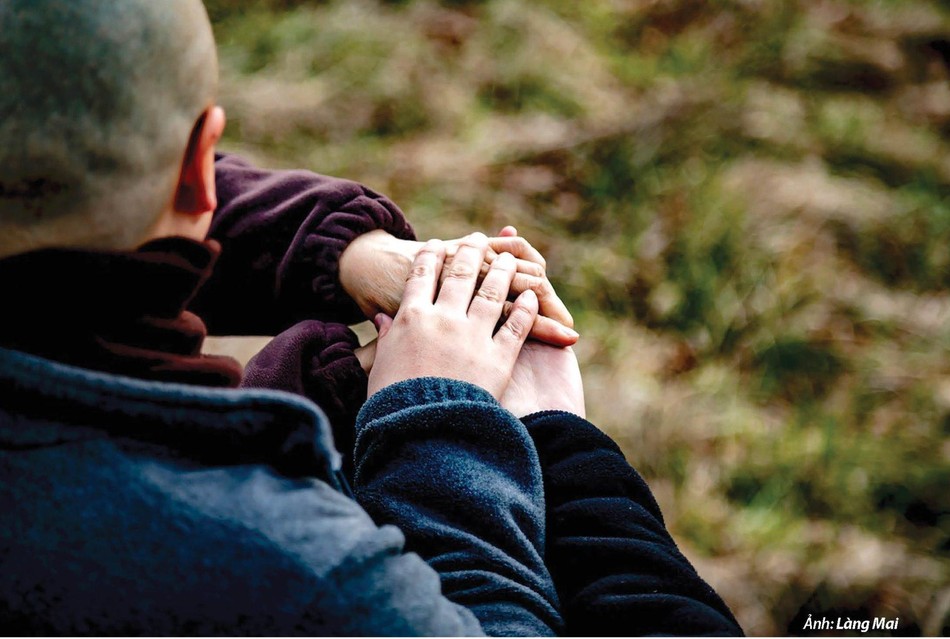 Ba mỉm cười, gửi niềm thương yêu đến chỗ đau rất hết lòng. Nhờ vậy ba bình an nuôi dưỡng mọi người. Nhờ có Tăng thân, chúng con chăm sóc cho ba đỡ nhọc nhằn và tinh thần vững hơn. Thời gian này, ngày nào cũng có người đến thăm, khích lệ tinh thần cho ba. Được nhiều người thương như pháp, chúng con được tưới tẩm dòng nước hiểu biết, thương yêu.