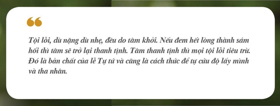 Tội lỗi, dù nặng dù nhẹ, đều do tâm khởi. Nếu đem hết lòng thành sám hối thì tâm sẽ trở lại thanh tịnh. Tâm thanh tịnh thì mọi tội lỗi tiêu trừ. Đó là bản chất của lễ Tự tứ và cũng là cách thức để tự cứu độ lấy mình và tha nhân. Phải chăng đây mới là ý nghĩa đích thực của thắng pháp Vu lan? Bởi bản chất của lễ Vu lan là nương nhờ thần lực hay sức mạnh tâm linh của ngày lễ Tự tứ, tức là ngày tha thứ giữa những người còn sống với nhau, là ngày mà mọi người biết cởi bỏ hận thù ràng buộc, biết buông bỏ lỗi lầm, biết lắng nghe và soi sáng cho nhau để sống vui an lạc. Nếu đúng vậy thì trong ngày lễ Vu lan, việc cần làm, phải làm và làm ngay của những người con là hãy nói lời xin lỗi với mẹ, với cha, vì ai trong chúng ta mà không hơn một lần có lỗi với đấng sinh thành?