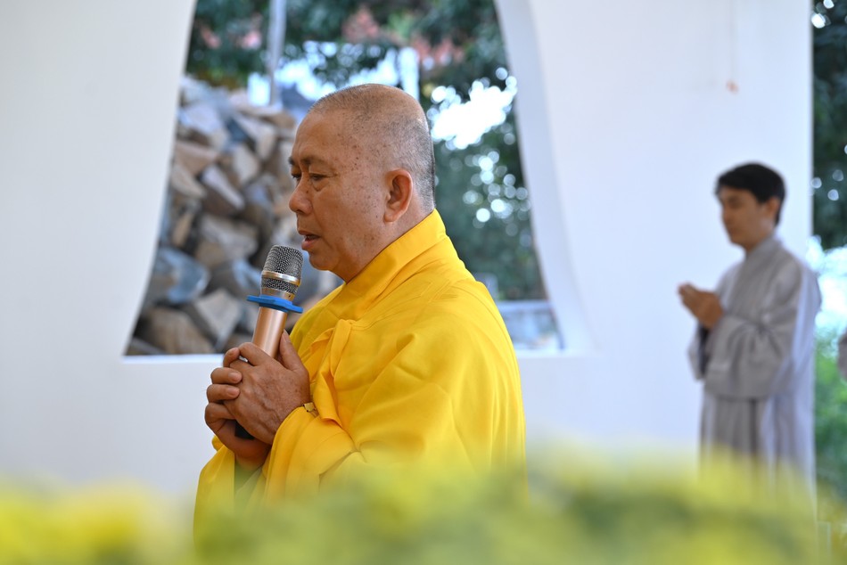 Dịp này, Đại đức Thích Nguyện Truyền, tri sự tu viện Vạn Liên cũng đã hướng dẫn đạo tràng dâng lời khánh tuế chúc Tết đến Hòa thượng trụ trì. Hòa thượng trụ trì tặng cho mỗi vị Phật tử một chuỗi đeo tay, chúc lành đến đại chúng tinh tấn, dõng mãnh, tiến tu tịnh nghiệp.
