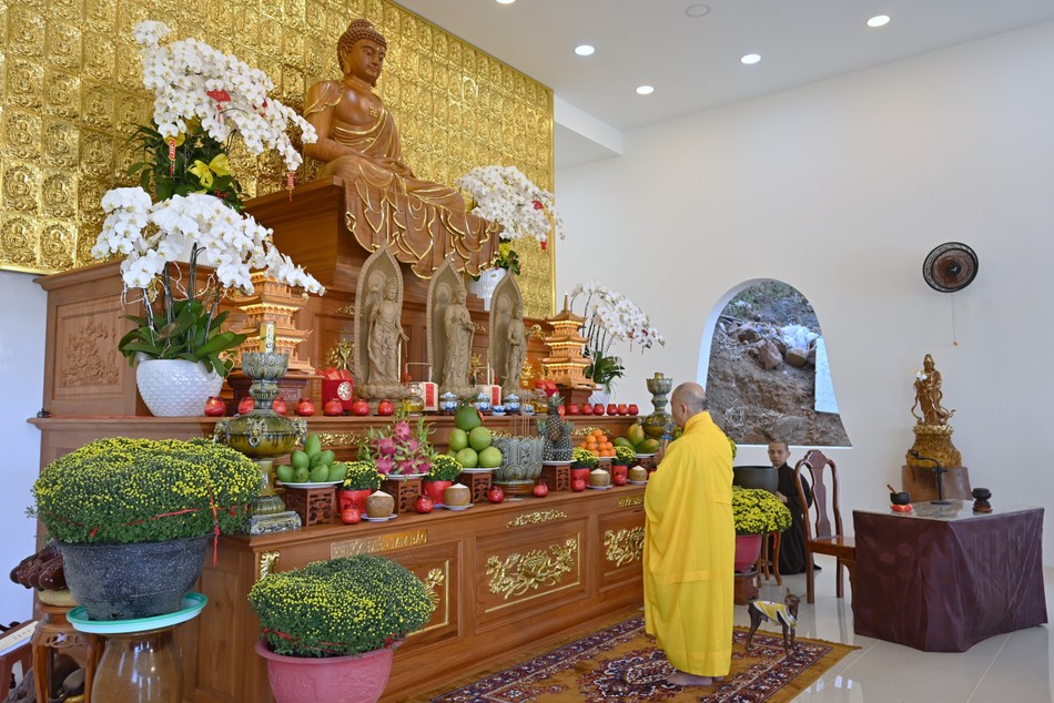Theo đó, sáng mùng 9 tháng Giêng, Hòa thượng Thích Hoằng Tri, trụ trì tu viện Vạn Liên đã đăng đàn truyền Bát quan trai giới cho nam nữ Phật tử phát tâm tu tập một ngày tịnh giới nhân dịp đầu xuân.