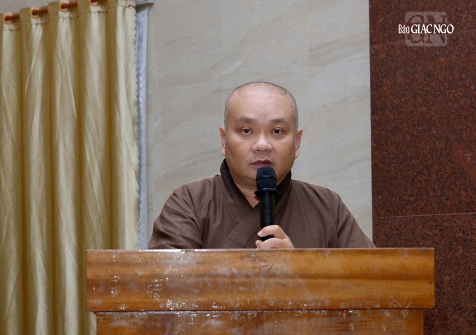 Thượng tọa Thích Tâm Hải báo cáo Khóa bồi dưỡng thiết kế truyền thông Phật giáo lần đầu tiên Ban Thông tin - Truyền thông GHPGVN TP.HCM tổ chức |