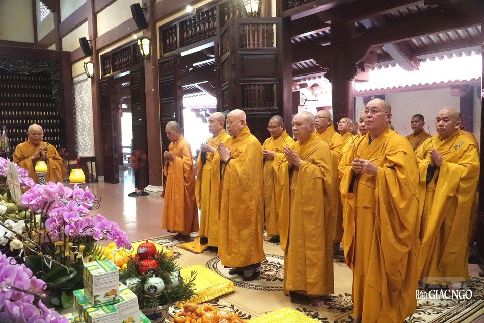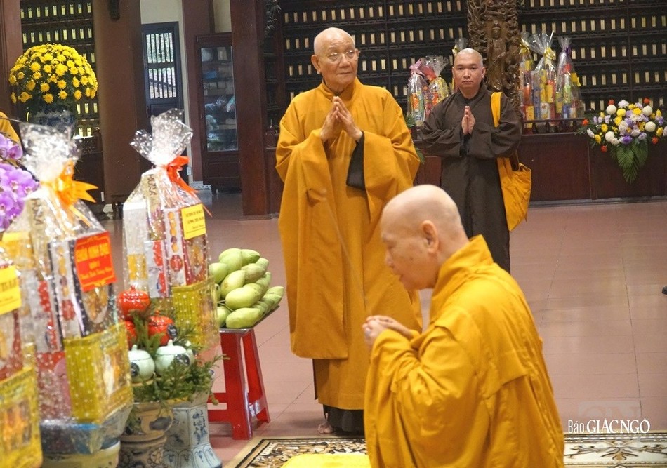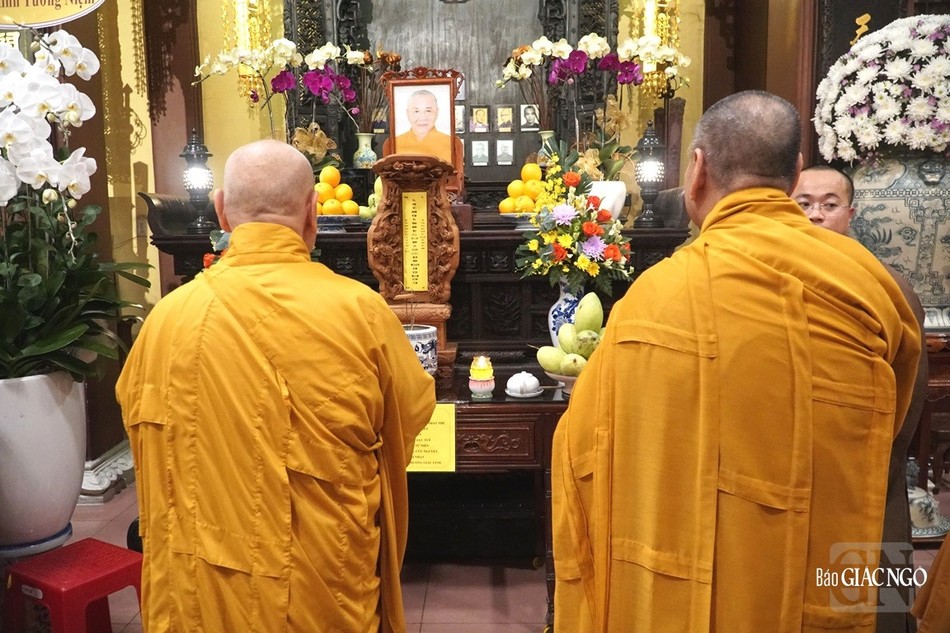 Tại tổ đường, nơi tôn trí pháp tướng của Trưởng lão Hòa thượng Thích Bửu Huệ, chư tôn giáo phẩm đã đảnh lễ bậc mô phạm có nhiều công đức đóng góp cho Phật giáo Việt Nam qua các thời kỳ, đặc biệt là công tác đào tạo Tăng tài cho GHPGVN.