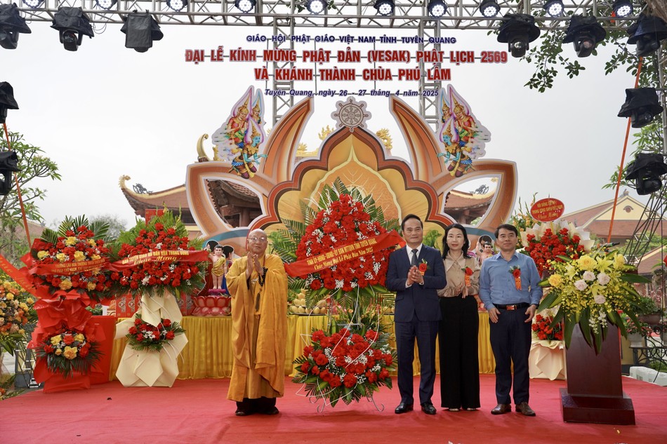 Nhân này, ông Hoàng Việt Phương, Phó Chủ tịch UBND tỉnh Tuyên Quan phát biểu chúc mừng Đại lễ Phật đản và khánh thành chùa Phú Lâm.