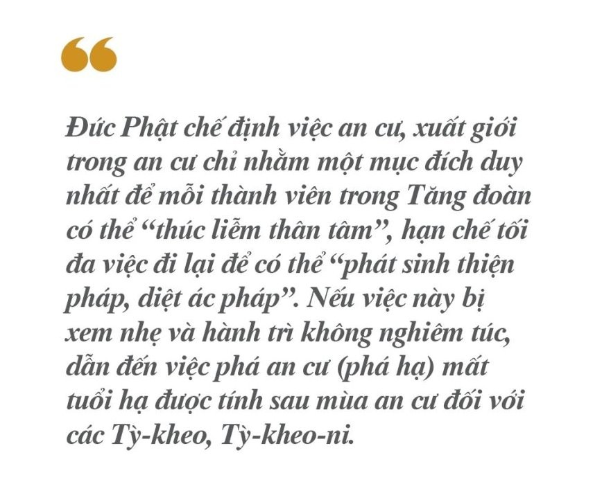 Việc ở trong cương giới được quy định chi tiết thời gian 3 tháng (1) , trong đó vấn đề ra khỏi cương giới an cư (xuất giới) cũng được quy định chặt chẽ.