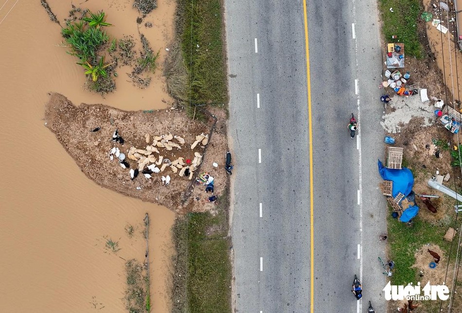 Dọc đường, hàng ngàn con dê, cừu, bò được người dân di tản lên quốc lộ. Tuy nhiên số gia súc chưa được cứu và di dời có thể rất lớn, vì khu vực này có đàn gia súc hàng vạn con.