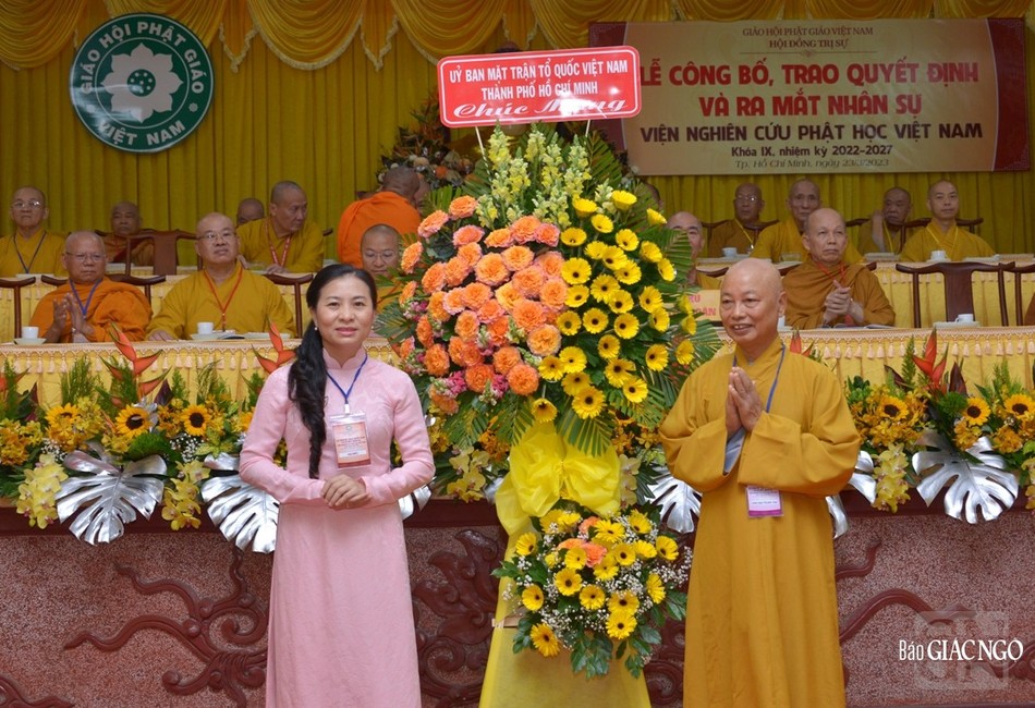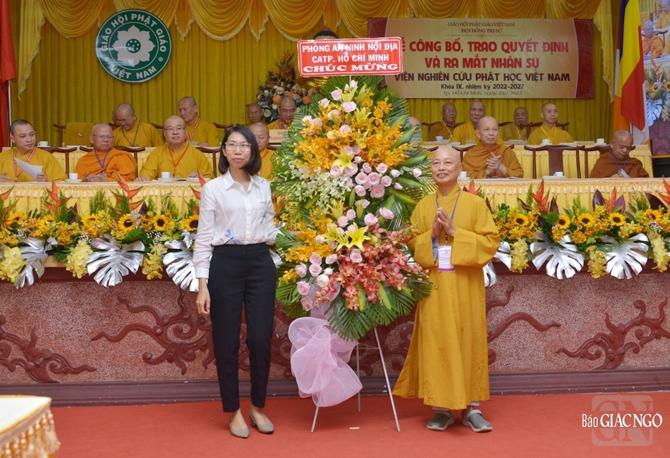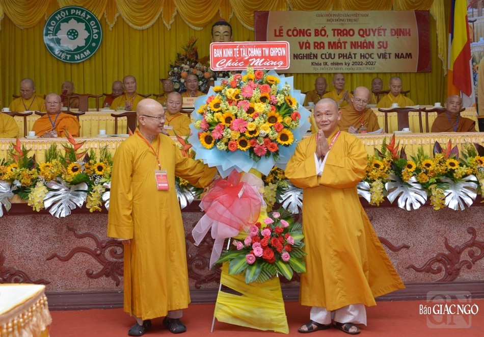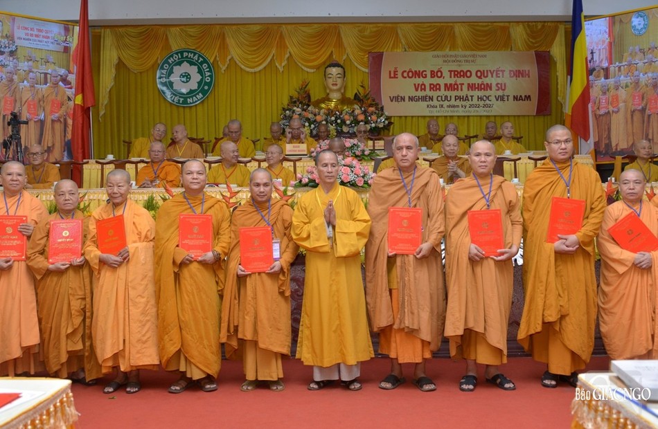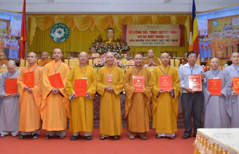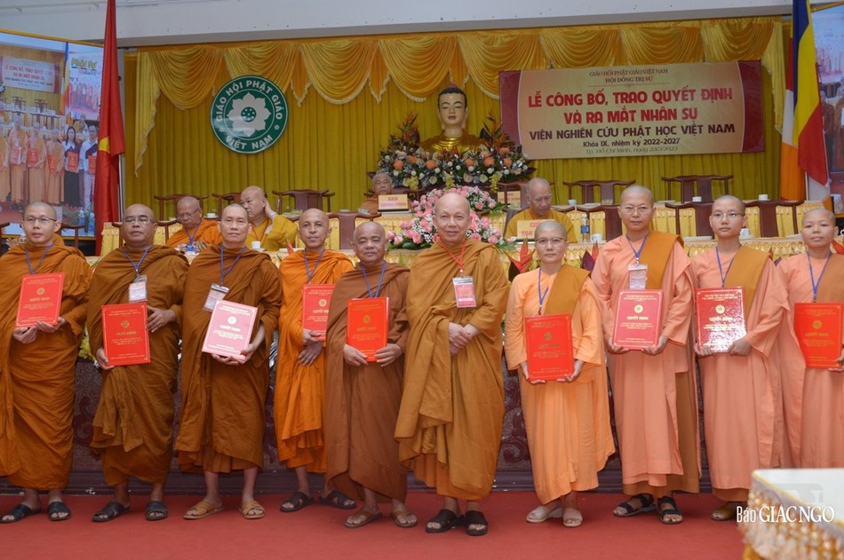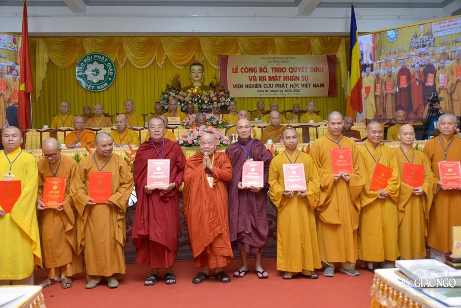 Sau đó, thay mặt Hội đồng Trị sự GHPGVN, Thượng tọa Thích Phước Nguyên đã công bố quyết định số 037 về việc chuẩn y nhân sự Viện Nghiên cứu Phật học Việt Nam khóa IX (2022-2027), gồm 2 vị Chứng minh, 98 thành viên trong đó có 16 thành viên Hội đồng Quản trị, 36 Ủy viên Thường trực và 46 Ủy viên do Hòa thượng Thích Giác Toàn làm Viện trưởng; Hòa thượng Thích Gia Quang, Phó Viện trưởng Thường trực, Viện trưởng Phân viện Nghiên cứu Phật học Việt Nam tại TP.Hà Nội; Hòa thượng Thích Tâm Đức, Phó Viện trưởng Thường trực.