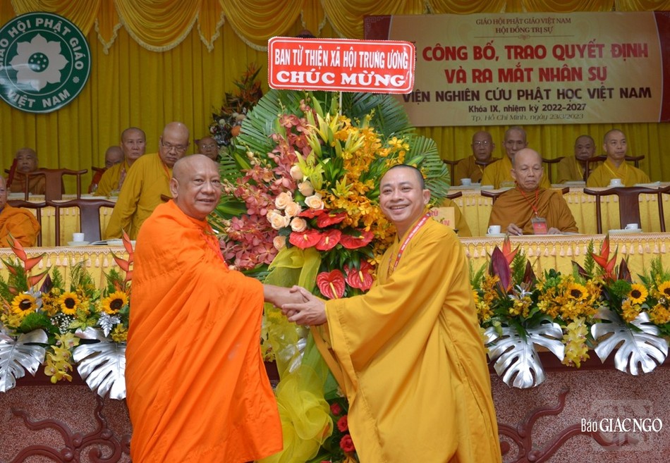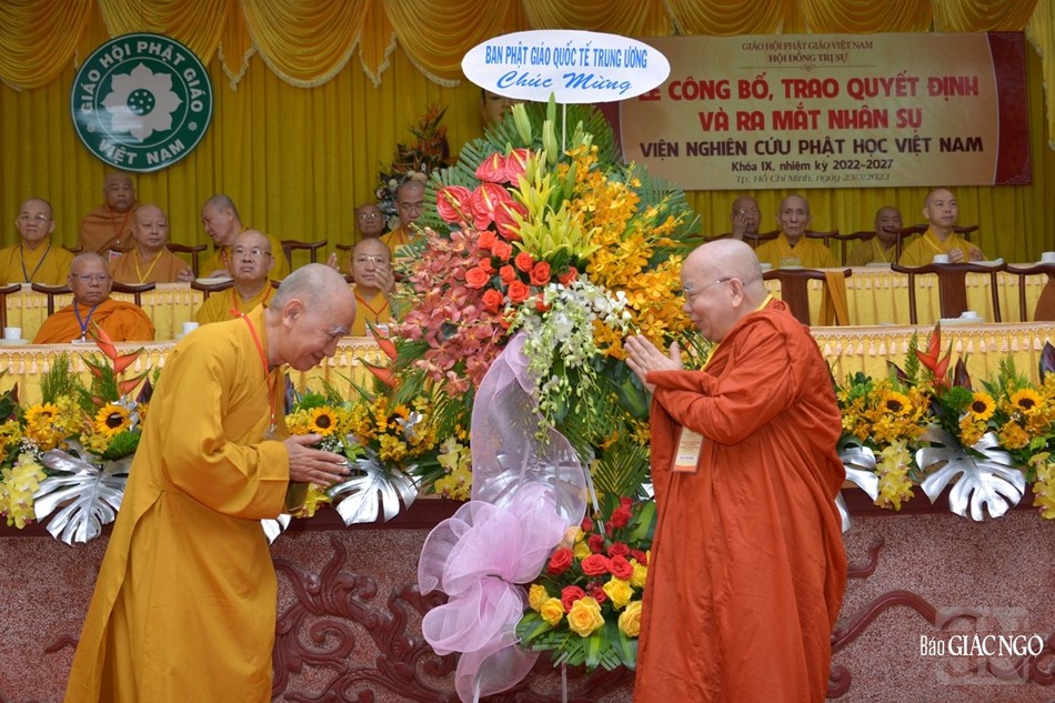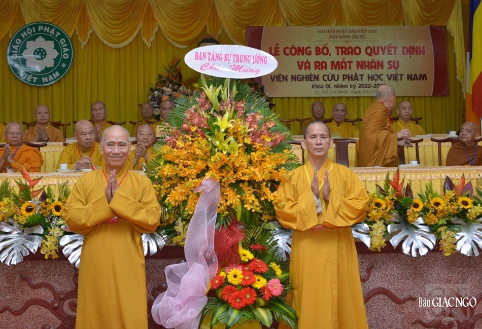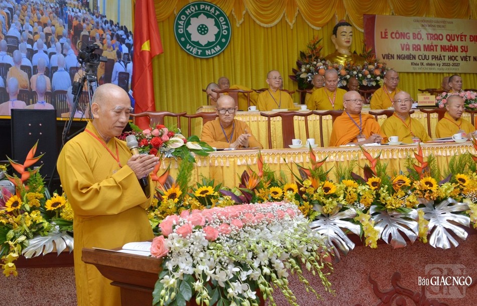 "Lễ công bố, trao quyết định và ra mắt nhân sự Viện Nghiên cứu Phật học Việt Nam nhiệm kỳ IX (2022-2027) đồng thời ra mắt 2 Phân viện, 10 Trung tâm và 2 Ban trực thuộc, là sự kiện trọng đại đánh dấu cho sự khởi đầu một nhiệm kỳ mới, tiếp nối thành công của nhiệm kỳ trước, mà các thành viên đã và đang cam kết đóng góp hết sức mình cho sự nghiệp phiên dịch, biên tập, trước tác, ấn hành Tam tạng Thánh điển Phật giáo Việt Nam, ấn hành Tục tạng Phật giáo Việt Nam cũng như các tác phẩm nghiên cứu Phật học và Phật giáo thế giới, góp phần phát triển văn học Phật giáo Việt Nam thêm tươi nhuận và khởi sắc", Hòa thượng Viện trưởng nhấn mạnh.