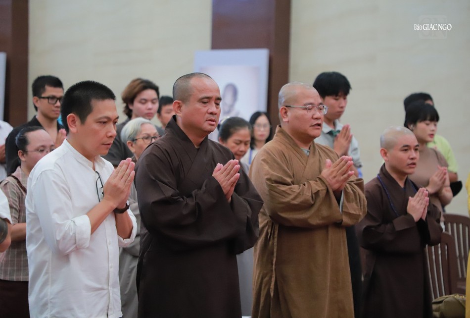 Theo đó, được sự cho phép của chư tôn đức lãnh đạo Ban Trị sự GHPGVN TP.HCM, chiều 17-5, tại hội trường Việt Nam Quốc Tự, Ban Thông tin - Truyền thông Phật giáo Thành phố đã tổ chức buổi họp mặt tri ân đến tất cả các đơn vị hỗ trợ, tình nguyện viên, đạo tràng tham gia phụng sự trong việc tổ chức tôn trí, chiêm bái xá-lợi Trái tim Bồ-tát Thích Quảng Đức, một trong những nội dung thuộc chương trình Đại lễ Vesak Liên Hiệp Quốc 2025 tại TP.HCM.