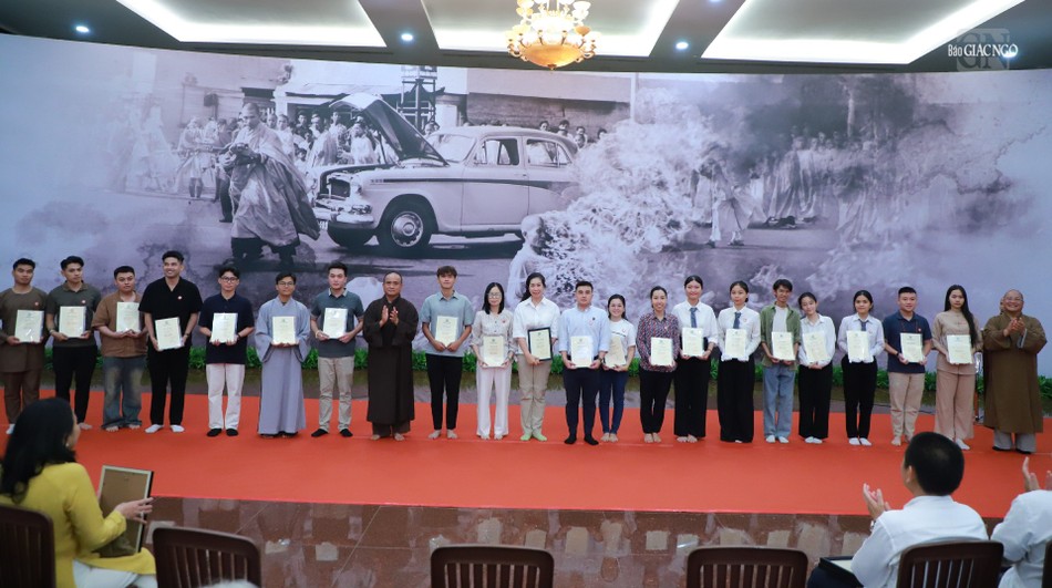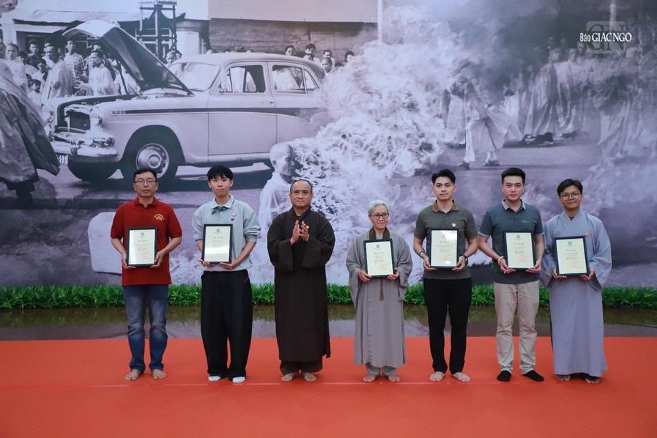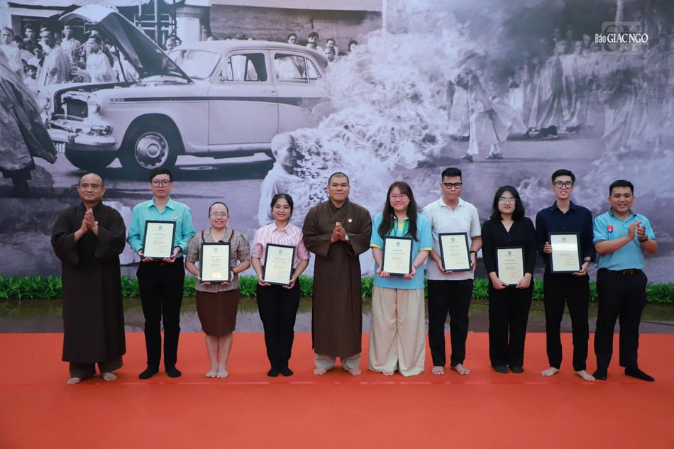 Dịp này, Ban Thông tin - Truyền thông GHPGVN TP.HCM trao tặng Thư tri ân của Hòa thượng Thích Lệ Trang, Phó Chủ tịch Hội đồng Trị sự, Trưởng ban Trị sự GHPGVN TP.HCM và quà lưu niệm của Giáo hội đến tất cả đơn vị, nhóm, tình nguyện viên đã hỗ trợ tổ chức Lễ chiêm bái xá-lợi Trái tim Bồ-tát Thích Quảng Đức tại Việt Nam Quốc Tự thành tựu.