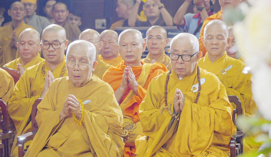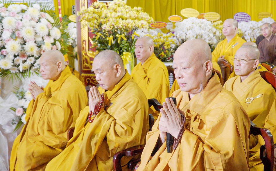 Chư tôn đức Hội đồng Chứng minh, Hội đồng Trị sự tưởng niệm Hòa thượng Thích Phước Hạnh tại chùa Phật Ngọc Xá Lợi |