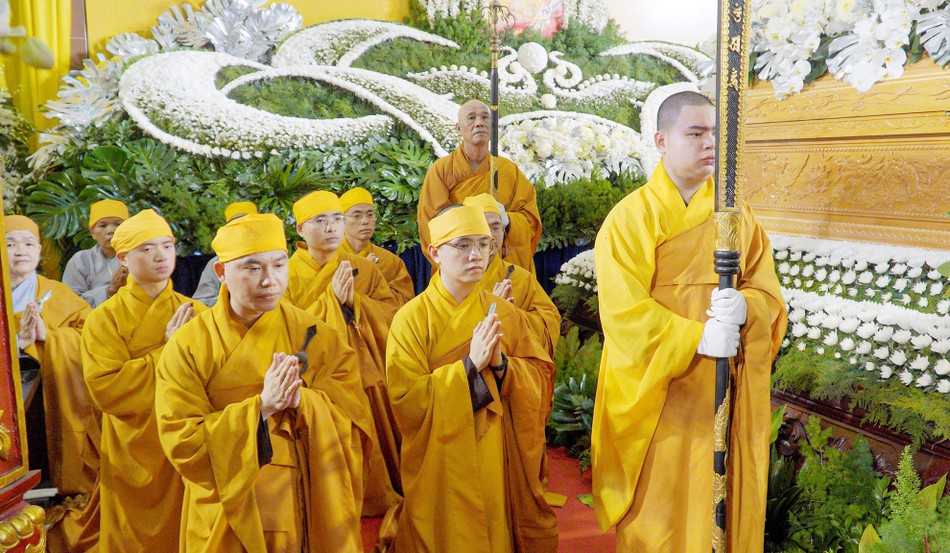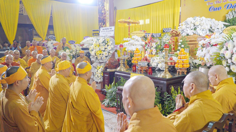 Trước Giác linh đài, với sự dẫn lễ của Hòa thượng Thích Lệ Trang, chư tôn giáo phẩm đã niêm hương cầu nguyện; sau đó, hữu nhiễu kim quan để tưởng niệm vị pháp lữ, cộng sự đồng hành trong niềm tiếc thương, quý mến.