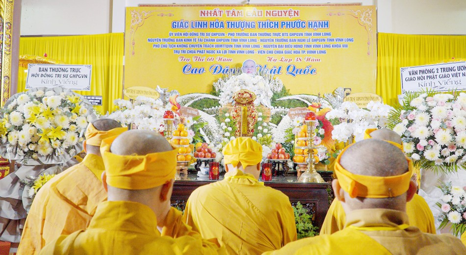 GNO - Chiều nay, 17-4, tại chùa Phật Ngọc Xá Lợi (TP.Vĩnh Long, tỉnh Vĩnh Long), chư vị giáo phẩm Hội đồng Chứng minh, Hội đồng Trị sự GHPGVN đã quang lâm viếng tang Hòa thượng Thích Phước Hạnh, Ủy viên Hội đồng Trị sự, Phó Trưởng ban Thường trực Ban Trị sự GHPGVN tỉnh Vĩnh Long tân viên tịch.