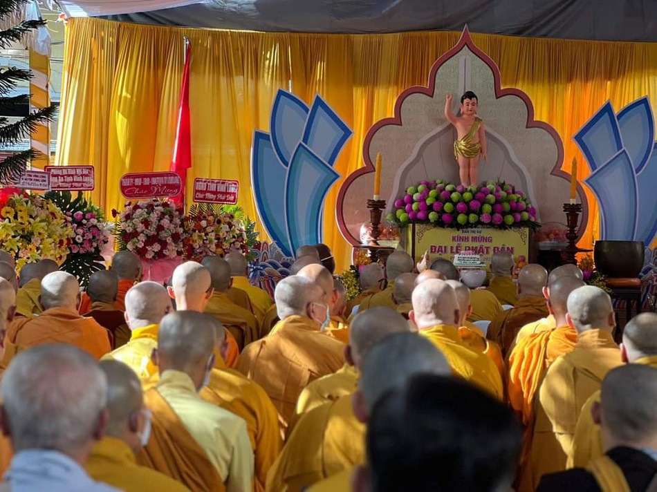 Sau lời phát biểu cảm tạ của Thượng tọa Thích Thiện Tâm, Phó ban Trị sự GHPGVNtỉnh, toàn thể lễ trường đồng lắng động tâm tư cử ba hồi chuông trống Bát nhã cung rước lễ Đản sanh. Sau đó, nghi thức dâng hương lễ Phật, cúng dường Phật đản của chư tôn đức Tăng Ni theo truyền thống Bắc Tông và Nam tông.