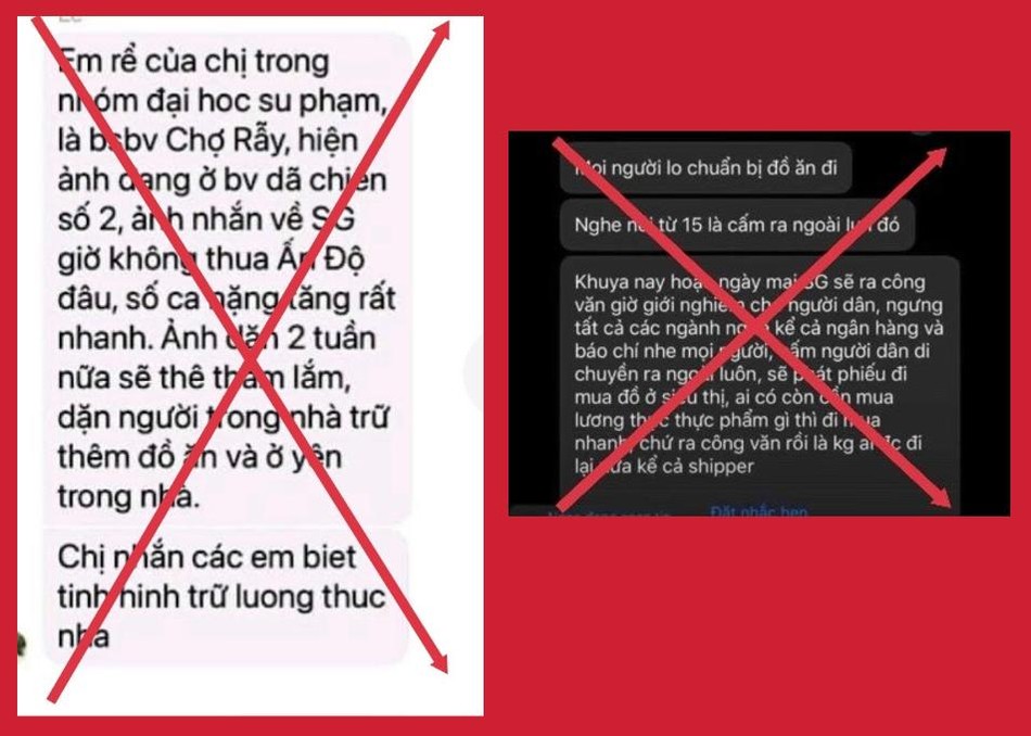 Chẳng hạn hiện nay, trên mạng xã hội đang lan truyền thông tin về việc TP.HCM sẽ thực hiện đóng cửa toàn thành phố (lock down) dẫn đến khan hiếm thực phẩm nên kêu gọi người dân tụ tập mua sắm, tích trữ hàng hóa; thông tin cho rằng lãnh đạo thành phố bị nhiễm Covid-19.