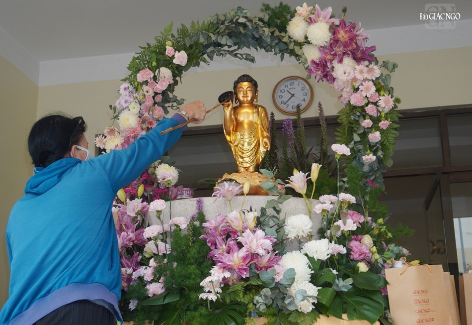 Cô Giác Hiền Thanh thực hiện Tắm Phật |